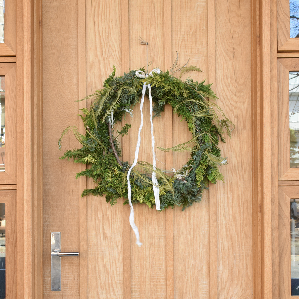 とても素敵なクリスマスリースやスワッグが店頭に並びます。